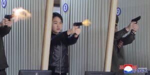 Севернокорејските државни медиуми минатиот месец објавија фотографии од Ким и неговата ќерка како возат нов тенк, откако претходните снимки покажаа како пука на стрелиште и користи пиштол.