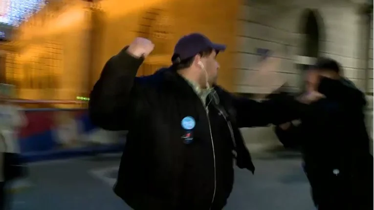 „Го чекавме последното вклучување во живо, стоевме меѓу зградата на Републичката изборна комисија и Претседателството, и во моментов кога чекав повторно да ме вклучат, ми пријде маж од околу 35-40 години и почна да ми дофрла нешто неразбирливо“, раскажа тој.