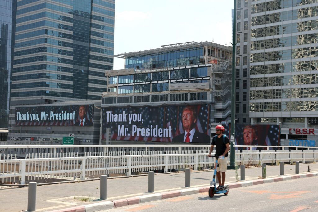 Во Тел Авив, израелскиот град шти беше особено погоден од иранскиот напад, се појавија големи постери со ликот на американскиот претседател Доналд Трамп.