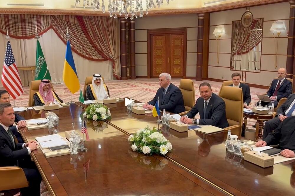 Новинарите накратко влегоа во просторијата, а средбата се одржува во еден хотел. Американскиот државен секретар Марко Рубио се насмевна „за камерата“ додека украинските власти седеа на масата спроти американската делегација. На разговорите присуствува и министерот за надворешни работи на Саудиска Арабија, а во заднина се американското, саудиското и украинското знаме.