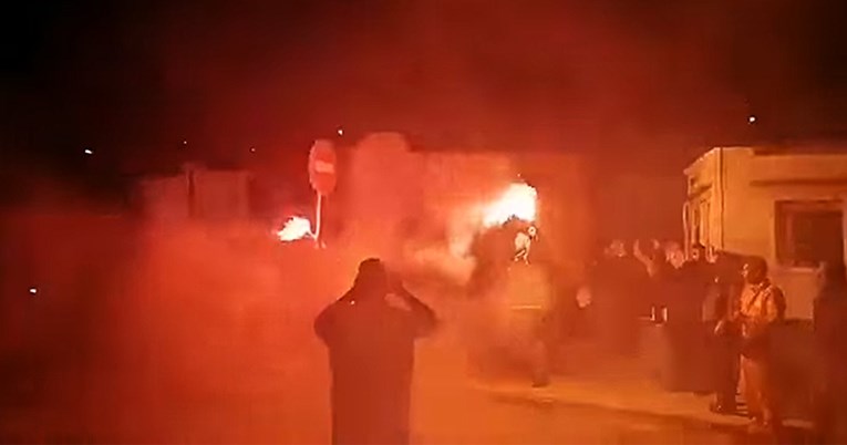 „Убијци, заминете од пристаништето“, гласи слоганот испишан на камионот, кој се гледа на фотографиите објавени на Фејсбук.