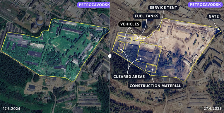 Сателитските снимки покажуваат драматични промени на таа локација од летото 2024 година. Обраснатата и запуштена шумска земја е исчистена, а снимките од октомври 2025 година откриваат нова расчистена површина со повеќе од 50 воени возила. Овој развој доаѓа во услови на стравувања на Западот дека поразот на Украина би можел да го отвори патот за руска агресија врз земјите од источниот крило на НАТО, вклучувајќи ја и Финска.