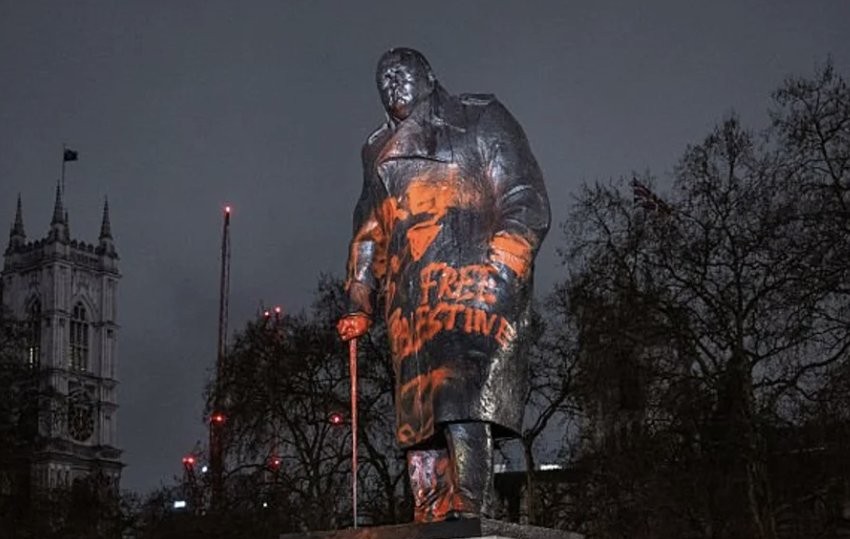 🚨 NEW: The statue of Winston Churchill has been defaced with the words “Zionist War Criminal” pic.twitter.com/gOImqFqCW8