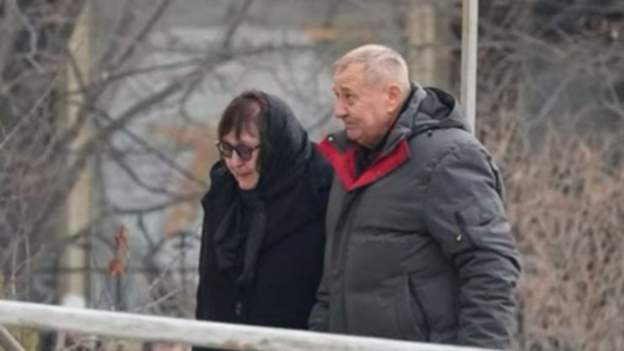 Родителите на Алексеј Навални, Анатолиј и Људмила, се видени како пешачат до црквата за да присуствуваат на погребот на својот син.