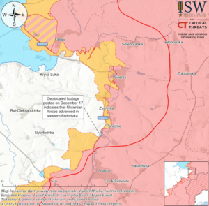 Според мапата на порталот Дипстејт, Серебрјанка беше под руска контрола на 22 декември, додека Сиверск беше делумно окупиран од руските сили, а поголемиот дел од градот беше во сивата зона.