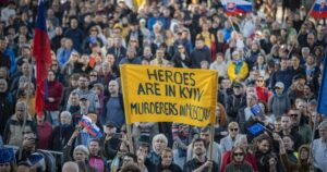 Во Братислава се одржа најголемиот протест. „9 мај е Денот на Европа, но не за секого. Роберт Фицо ќе го помине со воен злосторник“, објави организаторот на протестот на Фејсбук, мислејќи на рускиот претседател Владимир Путин.