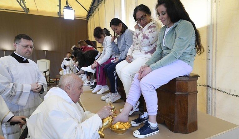 Седејќи во инвалидска количка, 87-годишниот папа им ги изми нозете на сите 12 затворенички, од кои некои беа во солзи, пред да ги избрише со крпа и да ги бакне.