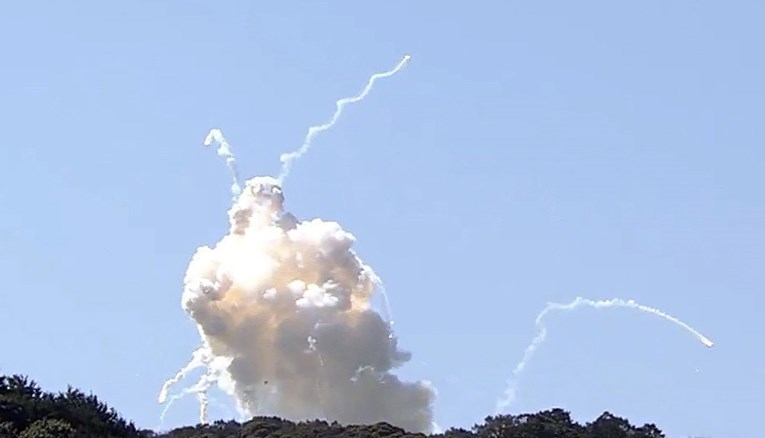 Запалените остатоци од ракетата паднале на околните планински падини.
