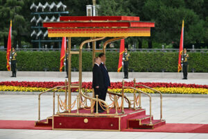 Путин пристигна рано утрово по кинеско време во Пекинг, каде што беше пречекан од Си Џинпинг со целосни воени почести пред седиштето на кинескиот парламент во центарот на градот.