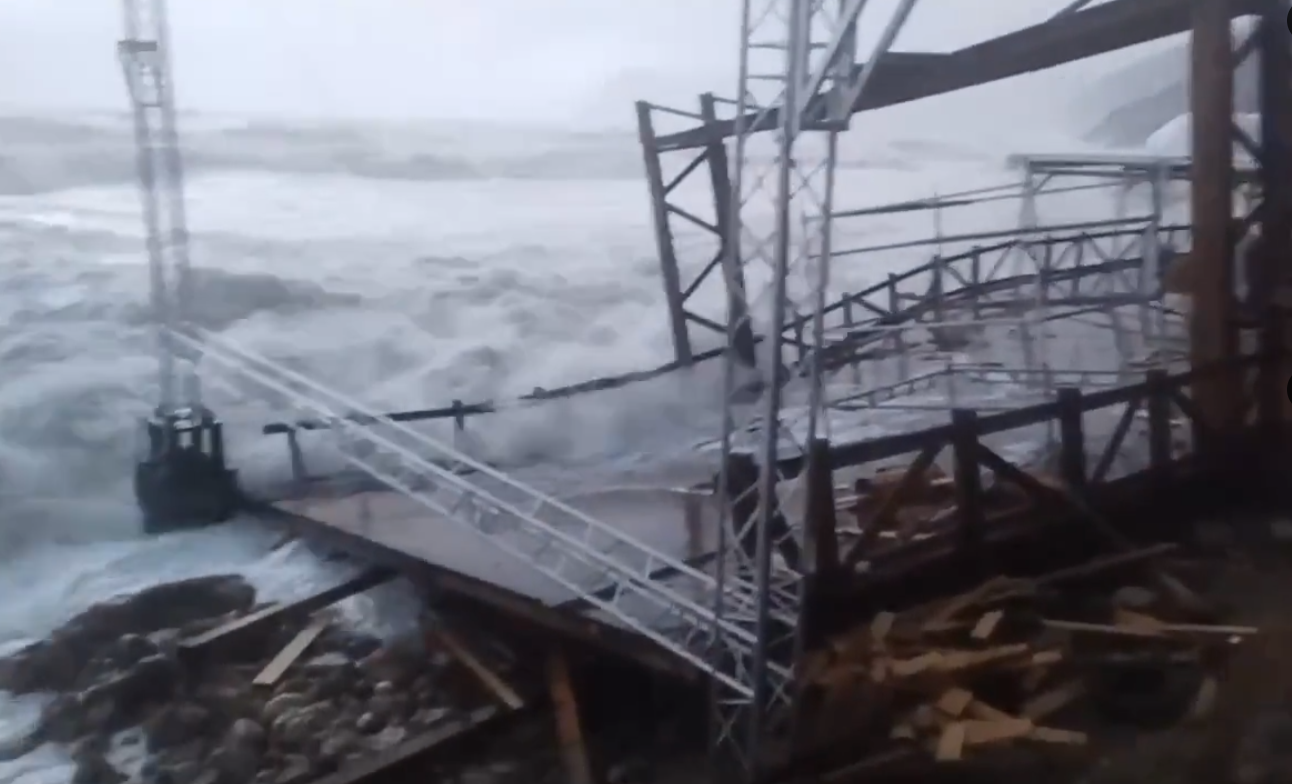 How it started. How it’s going.#Russian beach defenses in Crimea being hit hard by the storm, possibly much washed away.